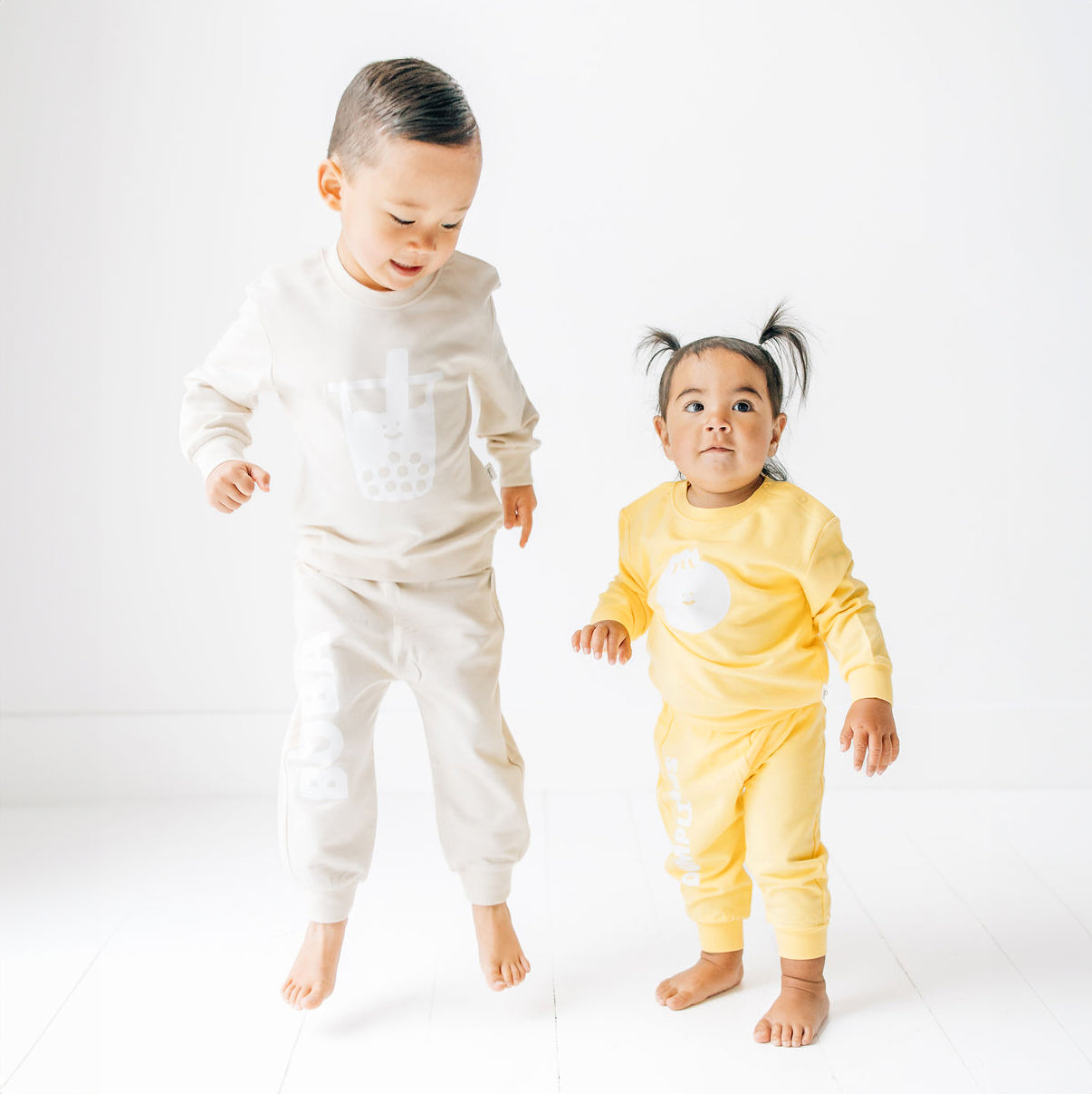Our boba milk tea kids matching set blends comfort, convenience, and cuteness for both kids and parents. Crafted with your little one in mind, these sweatsuits are made from a premium blend of bamboo and cotton, ensuring that they are incredibly soft and gentle on your child's delicate skin. Our smaller sizes feature a double button shoulder snap, making it easy to put on and take off, especially for those wriggly little arms.